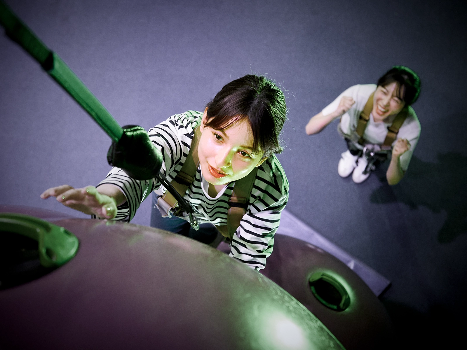 Participants must skillfully use the platforms on the sides of the sphere to climb the eight-tiered tower that resembles a giant dragon. Those who reach the top can ring a drum set at the top as proof of their success. There are three courses with varying difficulty levels depending on where you start.