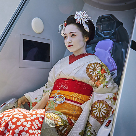 Board the cockpit (entry plug) inserted into the Evangelion Unit-01! The view of Kyoto from Eva's perspective is truly spectacular!