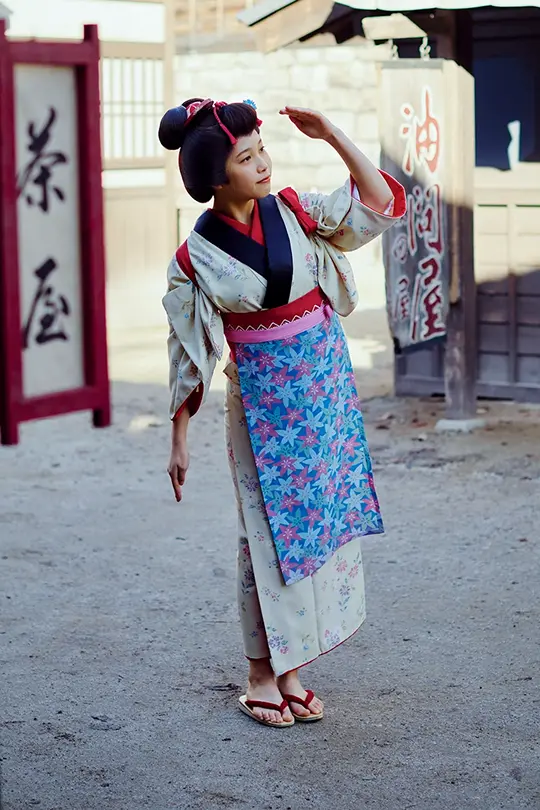 You can transform into the character you saw in Jidaigeki (period drama), or a Kyoto-style maiko, or whatever you want to be. We have a wide range of options to suit your tastes. Walk down the street in UZUMASA KYOTO VILLAGE as a character and become the protagonist of the story. Press the shutter and you'll be transported to Edo period.