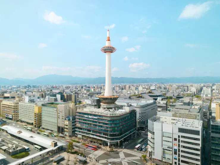 Stepping off the train in Kyoto and looking up, you'll be struck by the striking white and red form of the Nidec Kyoto Tower. This Kyoto landmark, a lighthouse standing in the landlocked city of Kyoto, boasts a unique structure built without the use of any steel. The 131-meter-tall tower features an observation deck offering panoramic views of Kyoto. Be sure to admire cultural landmarks such as Kiyomizu-dera Temple and Toji Temple from 100 meters above ground.