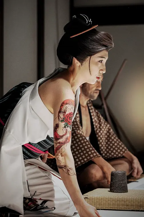 A dreamlike moment of intoxication in the Edo night